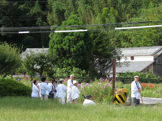 お遍路さんとコスモス。のどかな風景です。